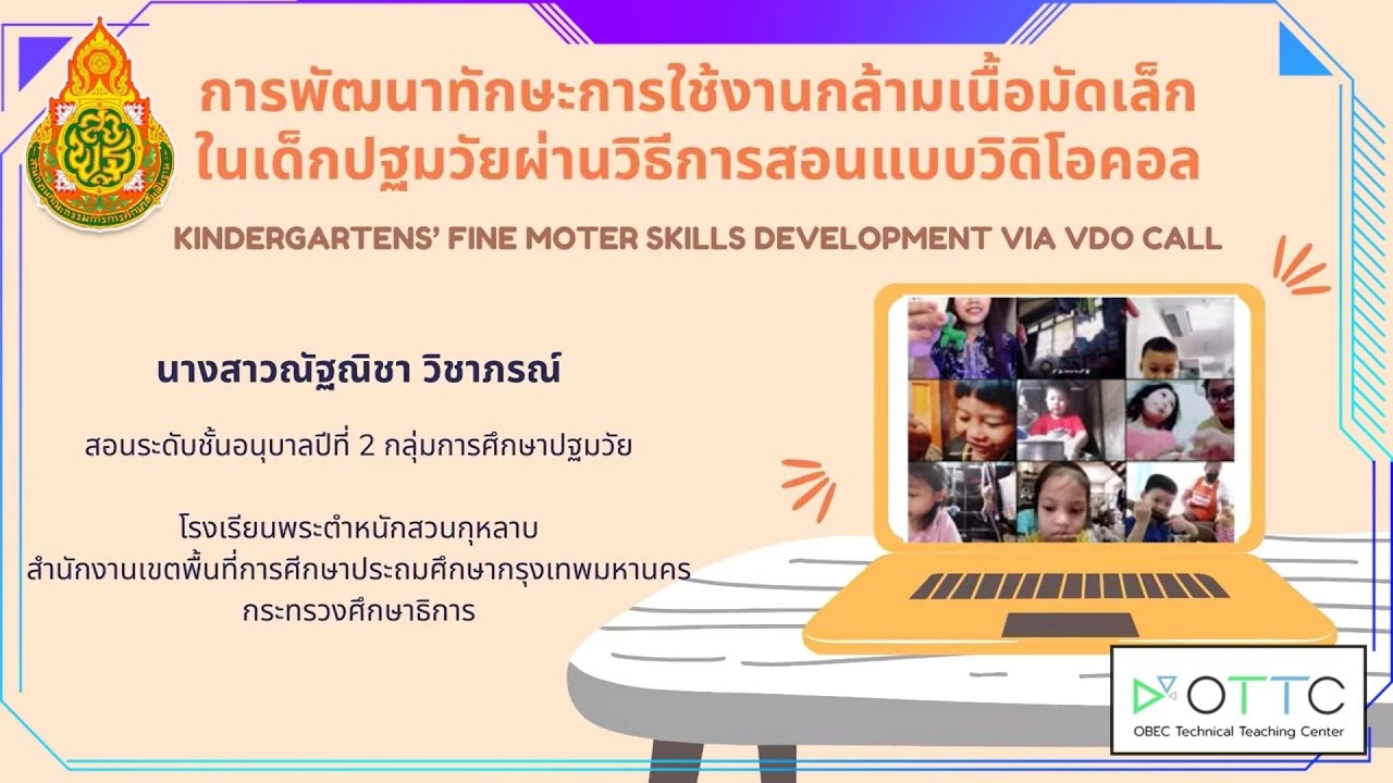 Blended, On-Demand, จัดประสบการณ์การเรียนรู้, ปฐมวัย, ผลงานครู, รูปแบบการสอนการพัฒนาทักษะการใช้กล้ามเนื้อมัดเล็กในเด็กปฐมวัยผ่านวิธีการสอนแบบวิดิโอคอล (KINDERGARTENS’ FINE MOTER SKILLS DEVELOPMENT VIA VDO CALL) Posted on 09/01/202225/01/2022 by Kwanchai Charoennet Continue reading →